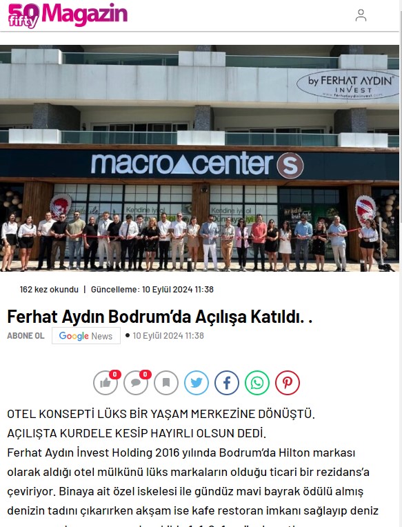 FERHAT AYDIN İNVEST HOLDİNG'in fark yaratan tüm projelerini inceleyiniz...